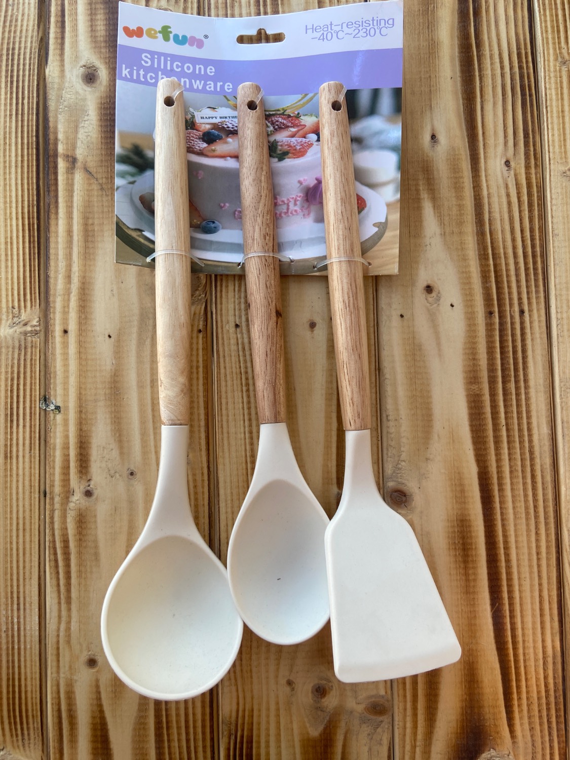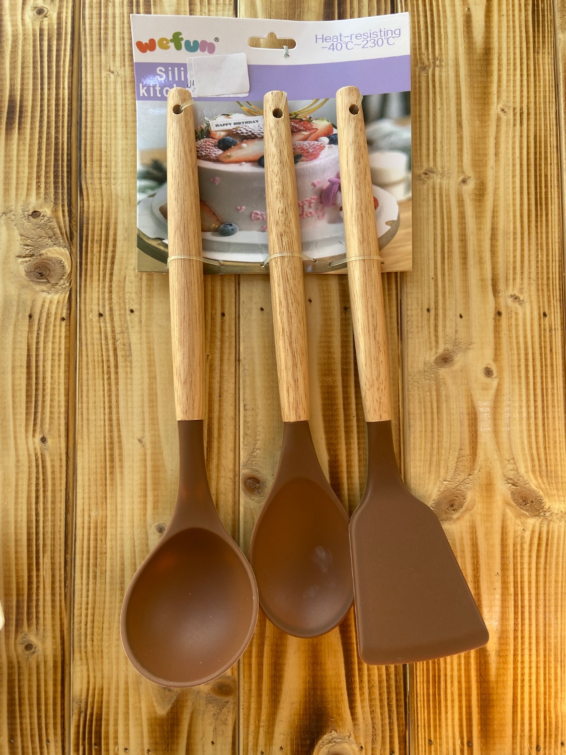 ست کفگیر و ملاقه سیلیکونی دسته چوبی 1